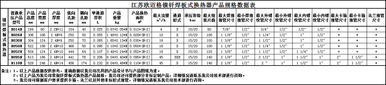 江蘇歐邁格鎳釬焊板式換熱器產(chǎn)品規(guī)格數(shù)據(jù)表